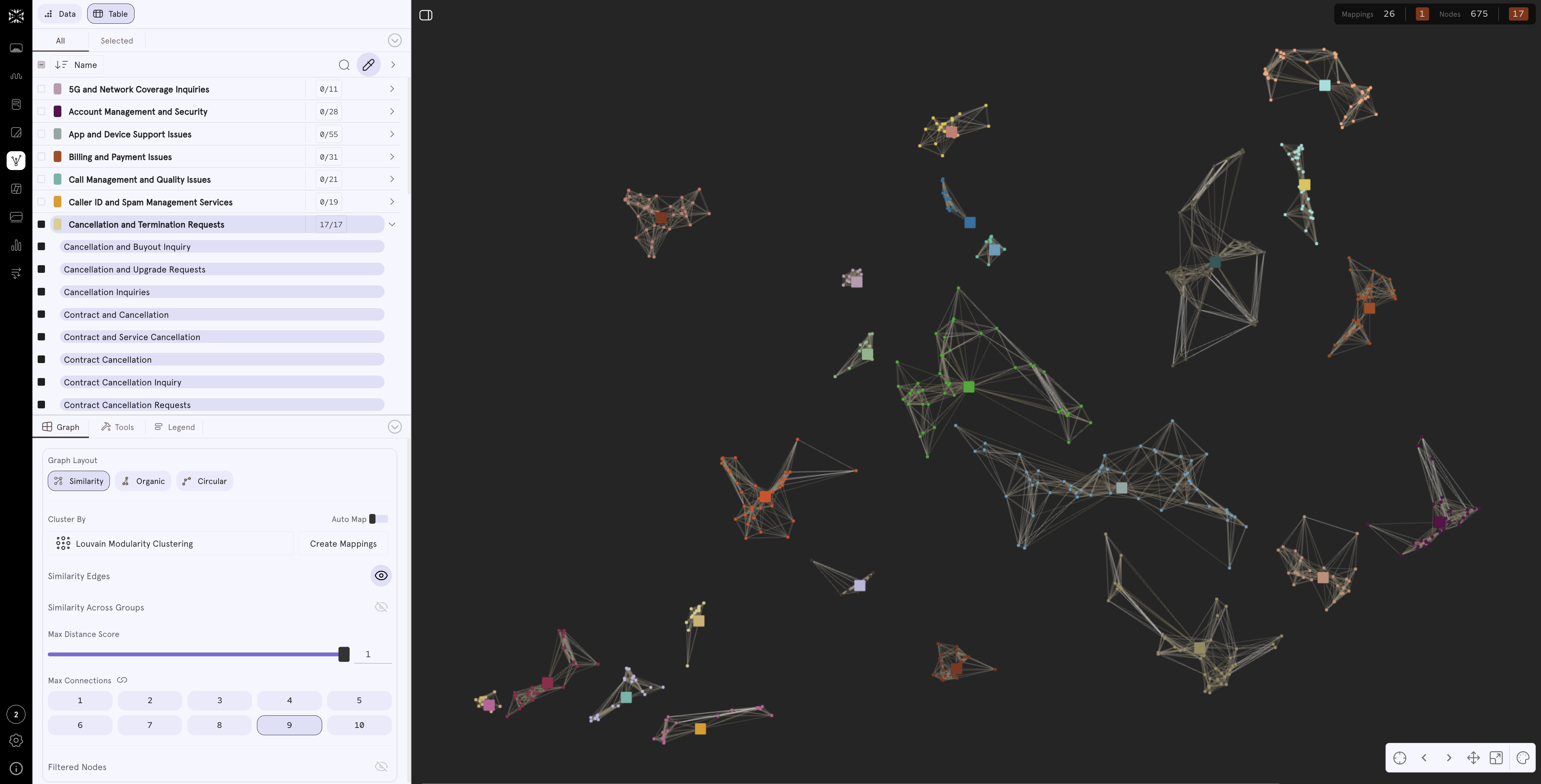 - Auto-mapping identifies clusters using adjustable similarity thresholds.